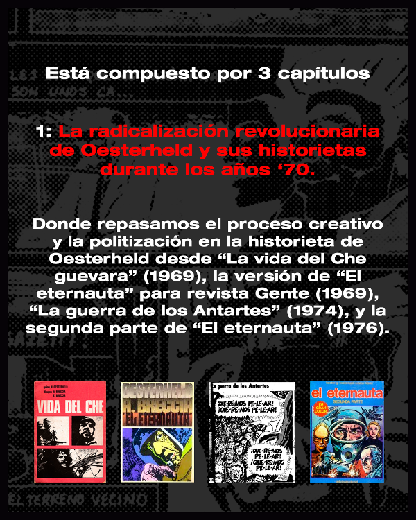 Nuestro nuevo lanzamiento está compuesto de tres capítulos que buscan pensar y profundizar en la relación de Héctor Germán Oesterheld, jefe de prensa de Montoneros, con la politización del arte y las proyecciones revolucionarias de la historieta durante los años '60 y '70.